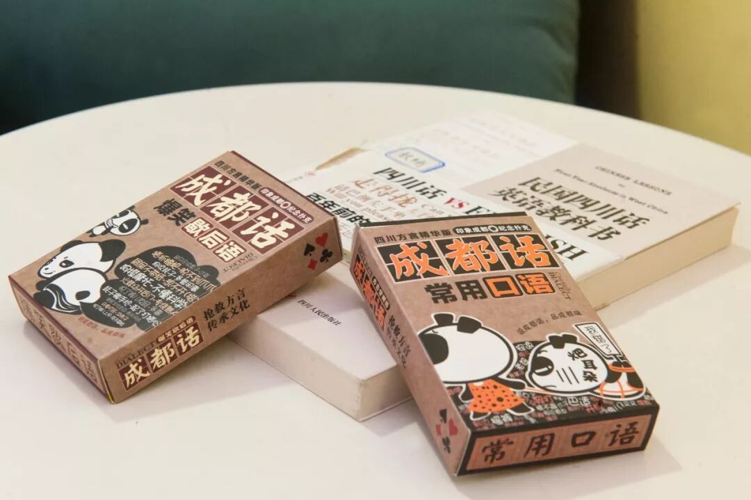 除了编写系统性的教材,老师们还找来很多有意思的教具,像一些印有成都趣味方言的扑克、本地综艺节目、李伯清的散打,有时候他们还会带着学生们去到一些民俗主题的餐厅,在体验成都文化的过程中进行沉浸式教学。